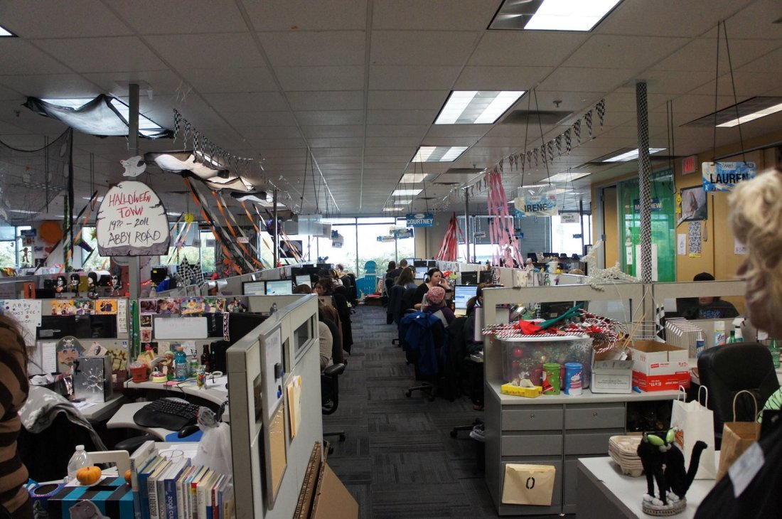 사무실 내부 전경. 여기는 일종의 고객 센터이다. 할로윈을 막 지난 후라 할로윈 장식이 여기 저기 눈에 띈다.