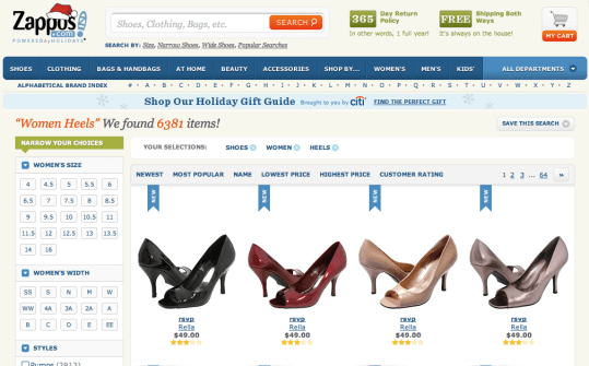 재포스(Zappos) 홈페이지