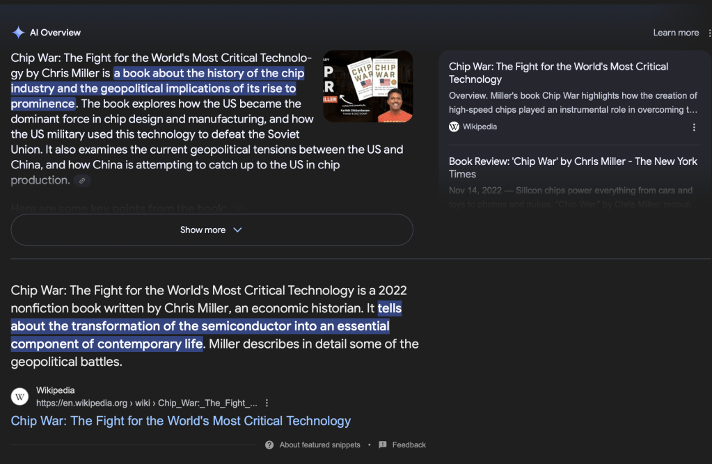 2024년 5월부터는 구글 검색을 할 때 AI 로 생성된 결과가 최상단에 뜬다. 내가 하는 질문에 대한 가장 직접적인 대답이 들어 있어 유용함을 많이 느낀다.