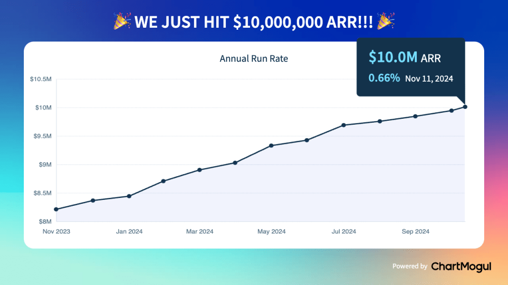 오늘은 정말 특별한 날. 차트메트릭의 연간 구독 매출(ARR)이 $10M을 넘었다. 2018년 말에 처음 $1MM 을 넘었다고 포스팅했는데, 그로부터 6년이 지나서의 일이다.
